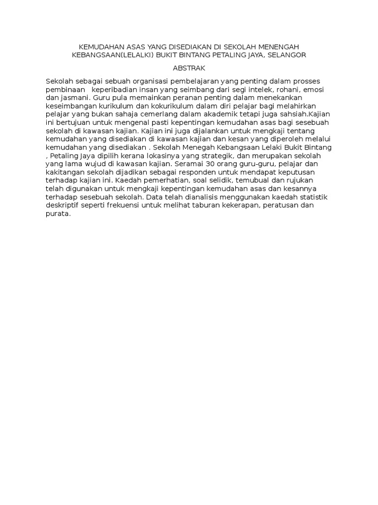 Kemudahan Asas Yang Disediakan Di Sekolah Menengah Kebangsaan Pdf